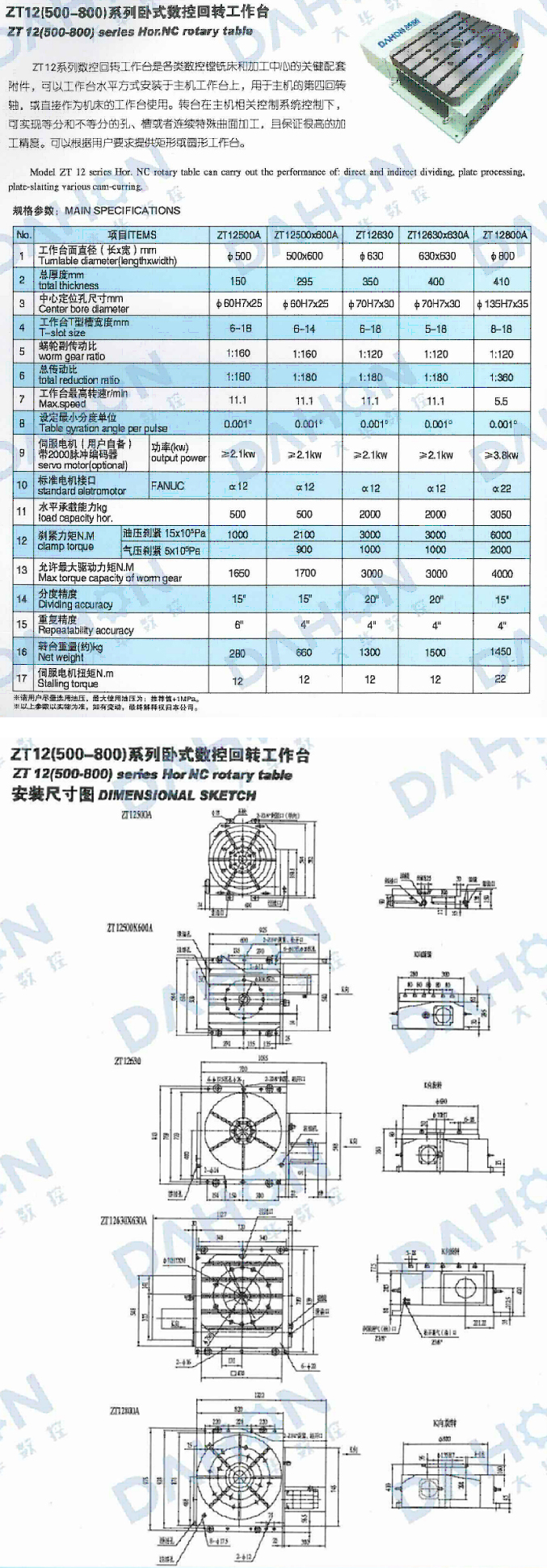 ZT12系列數(shù)控轉臺是各類數(shù)控鏜銑床和加工中心的關鍵配套附件,可以工作臺水平方式安裝于主機工作臺上,用于主機的第四回轉軸,或直接作為機床的工作臺使用。轉臺在主機相關控制系統(tǒng)控制下,可實現(xiàn)等分和不等分的孔、槽或者連續(xù)特殊曲面加工,且保證很高的加工精度。可以根據(jù)用戶要求提供知形或圓形工作臺。數(shù)控轉臺與數(shù)控分度頭的使用都是為加工與數(shù)控銑床提供回轉坐標,通過數(shù)控轉臺、第四軸、分度盤完成等分、連續(xù)、不等分的回轉加工過程,從而完成復雜曲面的加工作業(yè),進而讓機床原有的價格范圍得到擴大。