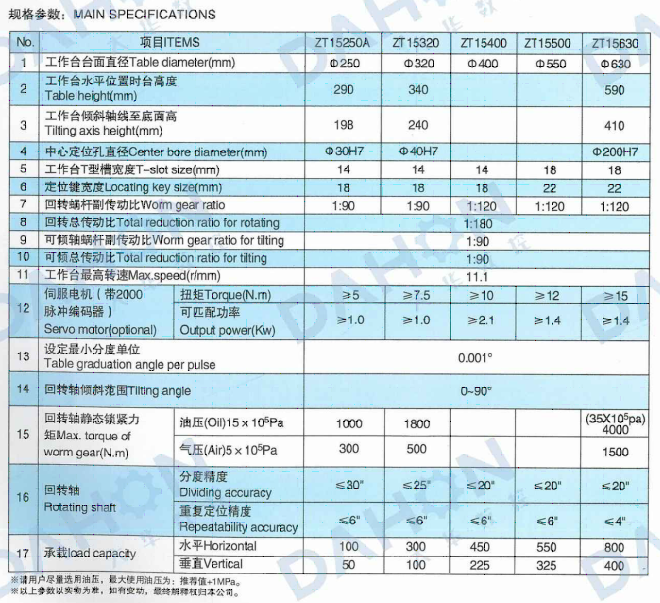 ZT 15 series NC rotary table is constructed co-mplete with an NCcontrollable rotary axis as well as a manual controllable tilting axis,and
