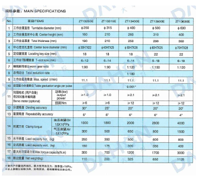 • 產(chǎn)品名稱: 煙臺ZT13(250-630)E/EL系列立臥兩用數(shù)控轉(zhuǎn)臺